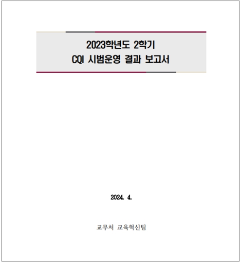 Continuous Quality Improvement(CQI) 보고서는 교수자가 자신의 한 학기 수업을 성찰하고 분석 및 평가하여 교육의 질을 지속적으로 개선하기 위한 보고서입니다.